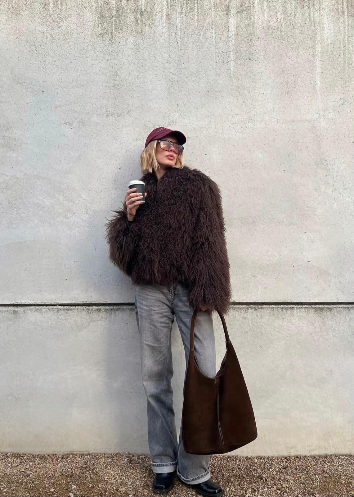 Der Mantel ist mittel geschnitten und fällt etwa bis zum Hüftknochen perfekt, um Eleganz und Alltagstauglichkeit zu verbinden. Das weiche, voluminöse Kunstfell sorgt für eine luxuriöse, auffällige Silhouette, ohne dabei aufzutragen, und der reguläre Schnitt bietet bequeme Bewegungsfreiheit für jeden Look.